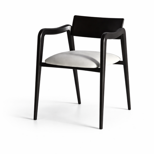 Modern Solid Wood Arm Dining Chair with Upholstered Seat – Minimal Black Finish
