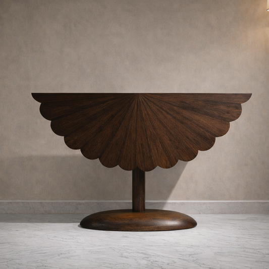 Sensu Solid Wood Console Table in Sheesham Wood | Designer Scallop Entryway Table | The Leaf Crafts