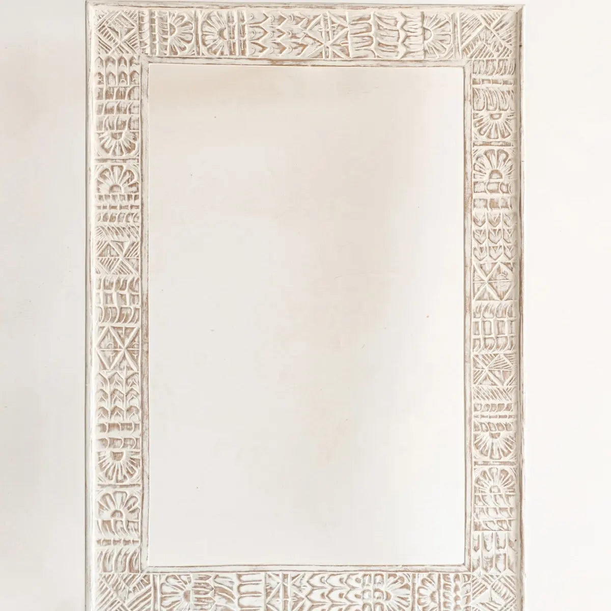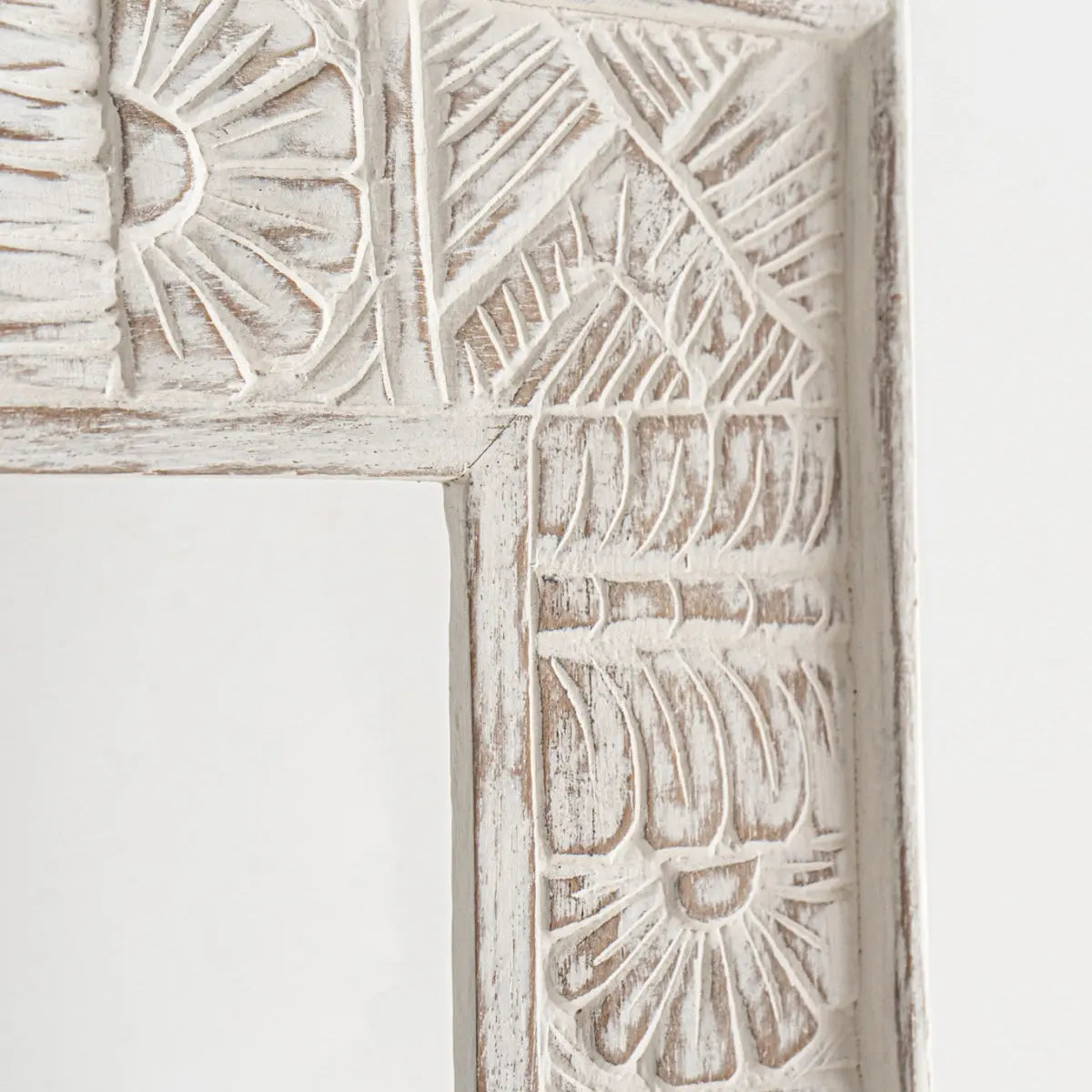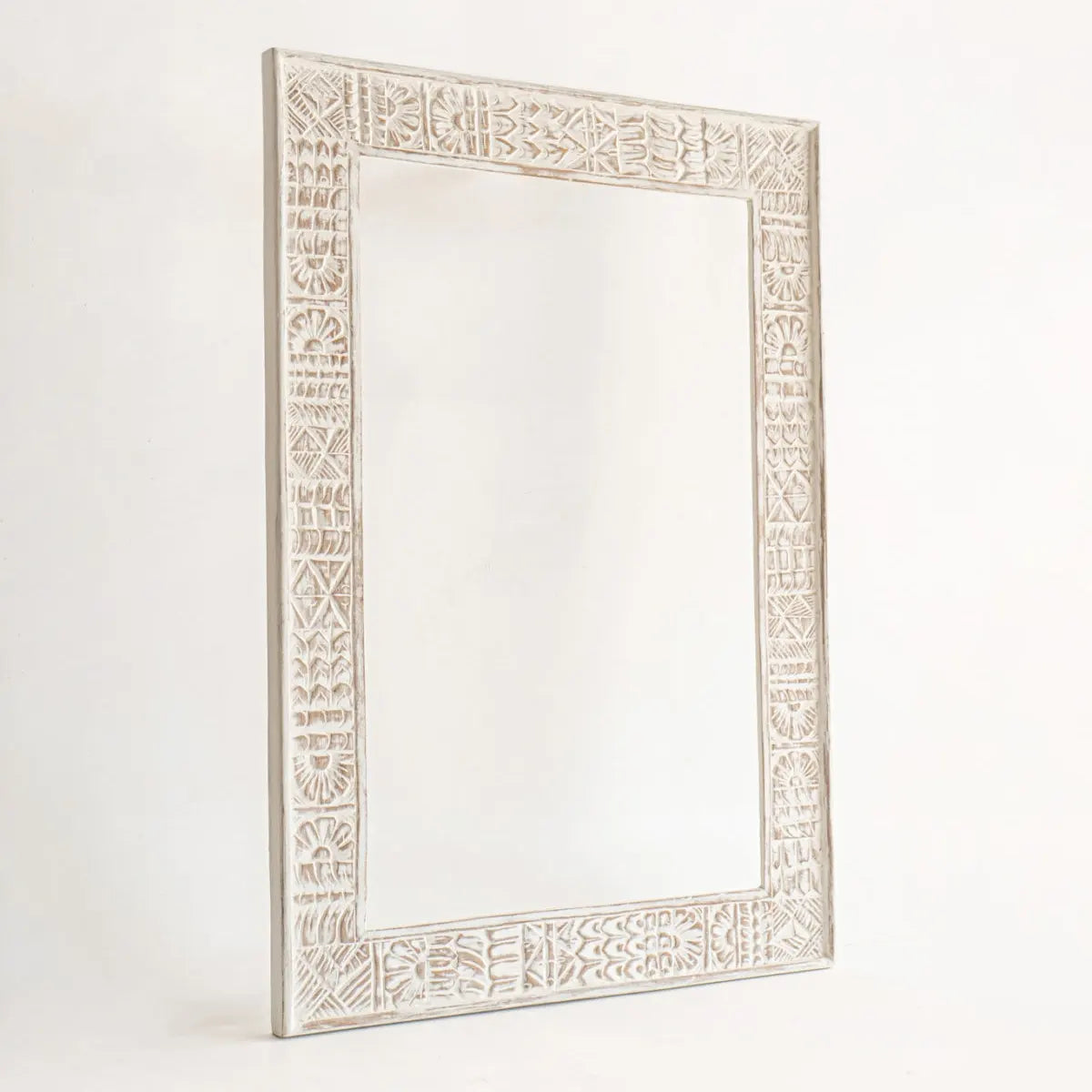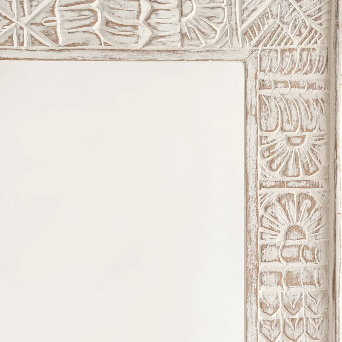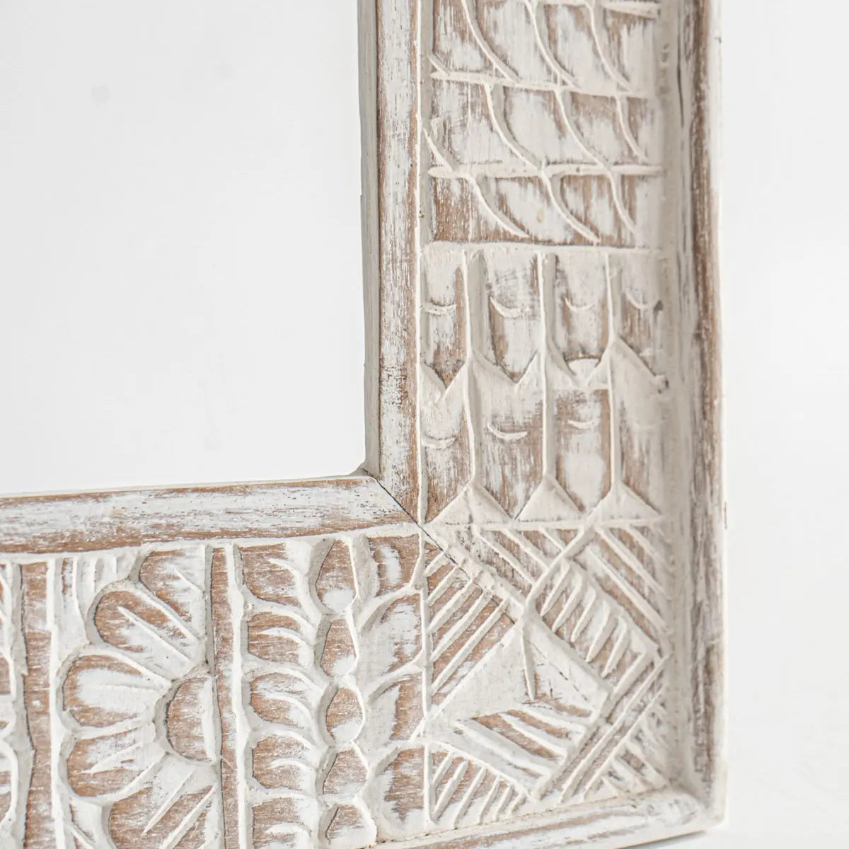This Handcrafted Solid Wood Mirror Frame with Intricate Carvings and Natural Finish is a stunning and unique piece of furniture that will add a touch of luxury and sophistication to any home. The mirror frame is made of high-quality solid wood and features intricate carvings on the sides and top. The carvings are hand-carved by skilled artisans, and each mirror frame is one-of-a-kind.